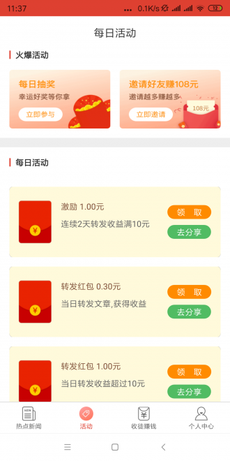 今日发app转发文章赚钱最新平台,是来自抢先收旗下的最新产物,之前老王就玩过一个叫金刚涨的平台,也赚了不少的收益,喜欢的赶紧下载试试吧!
